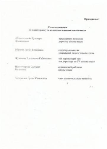 Протокола проверки школьной столовой комиссией по мониторингу за качеством питания