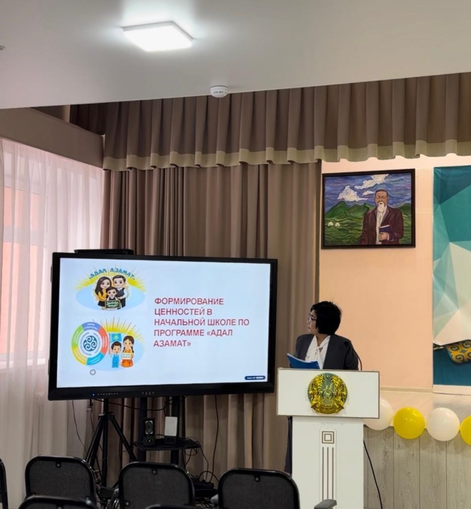 “Адал азамат” бағдарламасын енгізу тәжірибесі» тақырыбында қалалық семинар өтті. Аталмыш семинардың басты мақсаты: Бастауыш сыныптарда цифрлық платформалар мен жасанды интеллект (AI) құралдарын тиімді қолдану арқылы оқыту үдерісінің сапасын арттыру, мұғалімдердің цифрлық құзыреттілігін дамыту және “Адал азамат” бағдарламасын оқу-тәрбие процесіне кіріктірудің тиімді жолдарымен өзара тәжірибе алмасу. Семинарға Көкшетау қаласының және Зеренді ауданы Молодежный ЖОББМ-нің бастауыш сынып мұғалімдері қатысты. Семинар салтанатты ашылудан басталып, бастауыш сынып мұғалімдерінің үлгі сабақтарына ұласты. Атап айтқанда, семинардың I бөлімінде директордың тәрбие жұмысының орынбасарының м.а. Гульжан Какимжановна Нагуманова "Адал азамат: бастауыш сыныпта адалдық құндылықтарын қалыптастыру" тақырыбында баяндама жасады. Бастауыш сынып мұғалімдері А.О.Космаганбетова "Қазақ тілінен: «Өзіңді тексер»(2 «А»); А.Г.Ашенова орыс тілінен «Правописание и написание слов с непроизносимыми и удвоенными согласными в корне. Для чего нужны маяки»(3"В"); Б.Қ.Жулдугулова математикадан «Өткен материалды қайталау»(2"Б"), С.С. Мейрамова дүниетанудан “На чём интереснее путешествовать»,